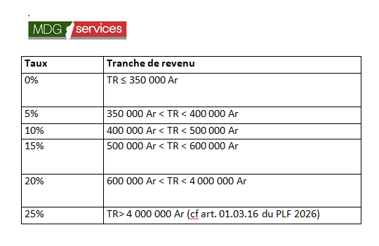 Minimum 3000 Ar, réduction de 2 000 Ar par enfant à charge.
